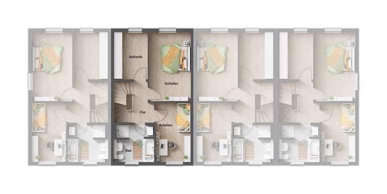 Mit vier Einheiten in einem Gebäude schafft dieses Reihenhaus die perfekte Balance aus individueller Wohnfreiheit und lebendiger Nachbarschaft – ein Zuhause, das moderne Ansprüche an Komfort, Design und Nachhaltigkeit erfüllt.