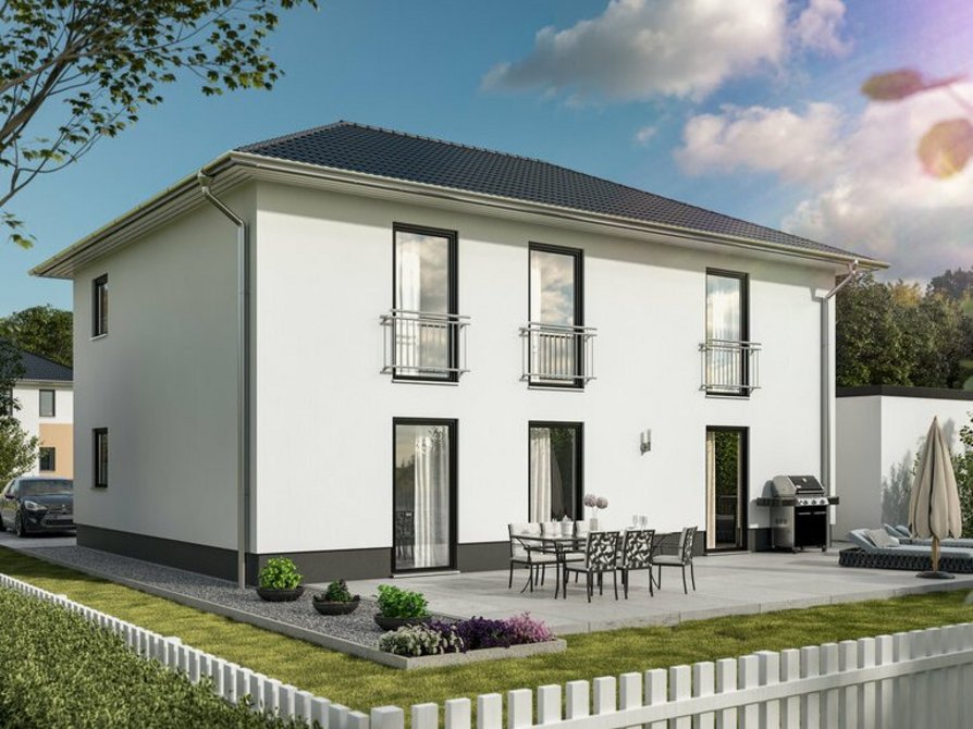ab Preis1 €Abbildungen enthalten Sonderwünsche die nicht Vertragsbestandteil sind, regionale Preis- und Ausstattungsänderungen möglich. Schlüsselfertig im Sinne dieses Angebotes bedeutet: ohne Tapezier- und Teppichverlegearbeiten.