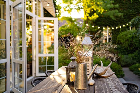 Mit dekorativen Elementen können Sie die Urlaubsstimmung weiterhin entfachen. Lichterketten rufen am Abend ein romantisches Ambiente hervor, während Windspiele Dynamik in den Garten bringen. Stilvoll sind auch Wasserspiele wie Springbrunnen, Wasserläufe oder kleine Rinnsale. Dekoration, die auch der Natur nützt, sind Insektenhäuser und Vogelkästen. Sie gelten als Brut- und Versorgungsorte für Nützlinge und verschönern gleichzeitig den Garten.