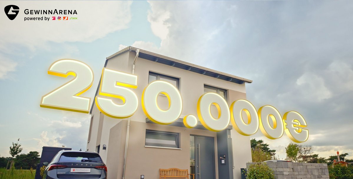 Vom 17. Oktober bis 01. November 2022 verlosen SAT.1, PROSIEBEN und KABEL EINS in Kooperation mit Town & Country Haus ein Traumhaus im Wert von 250.000 EUR. Jetzt teilnehmen und mit ein wenig Glück sich den Traum vom Eigenheim erfüllen! Sicher und massiv gebaut, mit viel Platz zum Wohlfühlen für die ganze Familie!