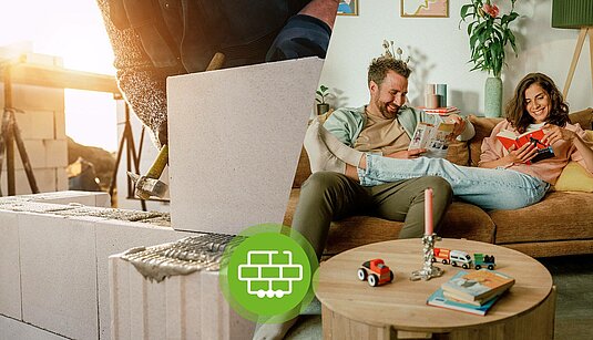 Mit einem Town & Country Massivhaus sind Bauherren optimal aufgestellt. Zum Einsatz kommt Porenbeton – ein regionaler Baustoff, der umweltschonend aus den natürlichen Materialien Branntkalk, Quarz, Sand und Wasser hergestellt wird. Die Steine überzeugen nicht nur mit ihrer Langlebigkeit, sondern auch mit sehr guten Wärmedämmeigenschaften. Deshalb können Häuser aus Porenbeton mit einer vergleichsweise geringen Wandstärke gebaut werden. Geheizt wird regenerativ über eine Wärmepumpe in Kombination mit einer Fußbodenheizung. Beide Komponenten sind in der umfangreichen Vollausstattung eines Town & Country Hauses inbegriffen. Ebenfalls enthalten ist eine Photovoltaik-Vorrüstung, die es Bauherren ermöglicht, sich komplett unabhängig von fossilen Energieträgern zu machen. Dann, wenn sie es wollen.